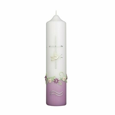 Taufkerze, individualisierbar mit Name und Taufdatum des Kindes. In der Größen 265/60 mm erhältlich. Sondergrößen bitte anfragen.